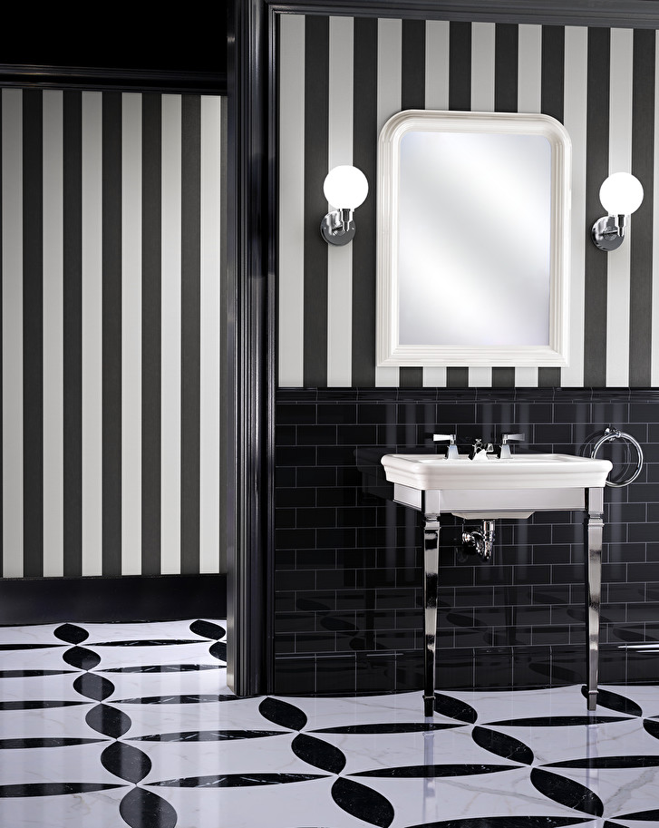 Its linear structure and its square sectioned legs are explicitly inspired by the look of the American 1930's design. The elegant structure in fused aluminium with turned brass elements is available in chrome, light gold or polished nickel finishes.