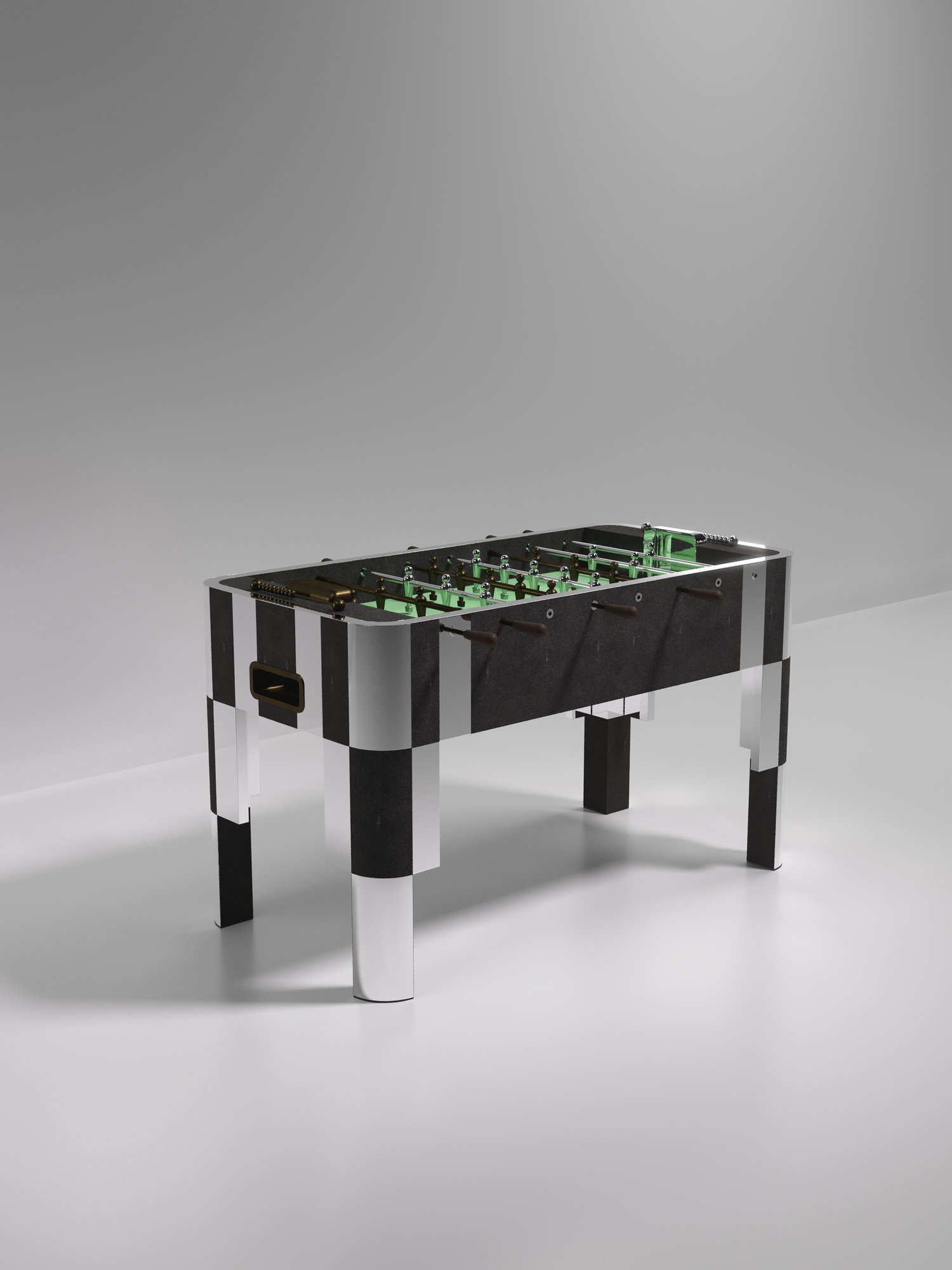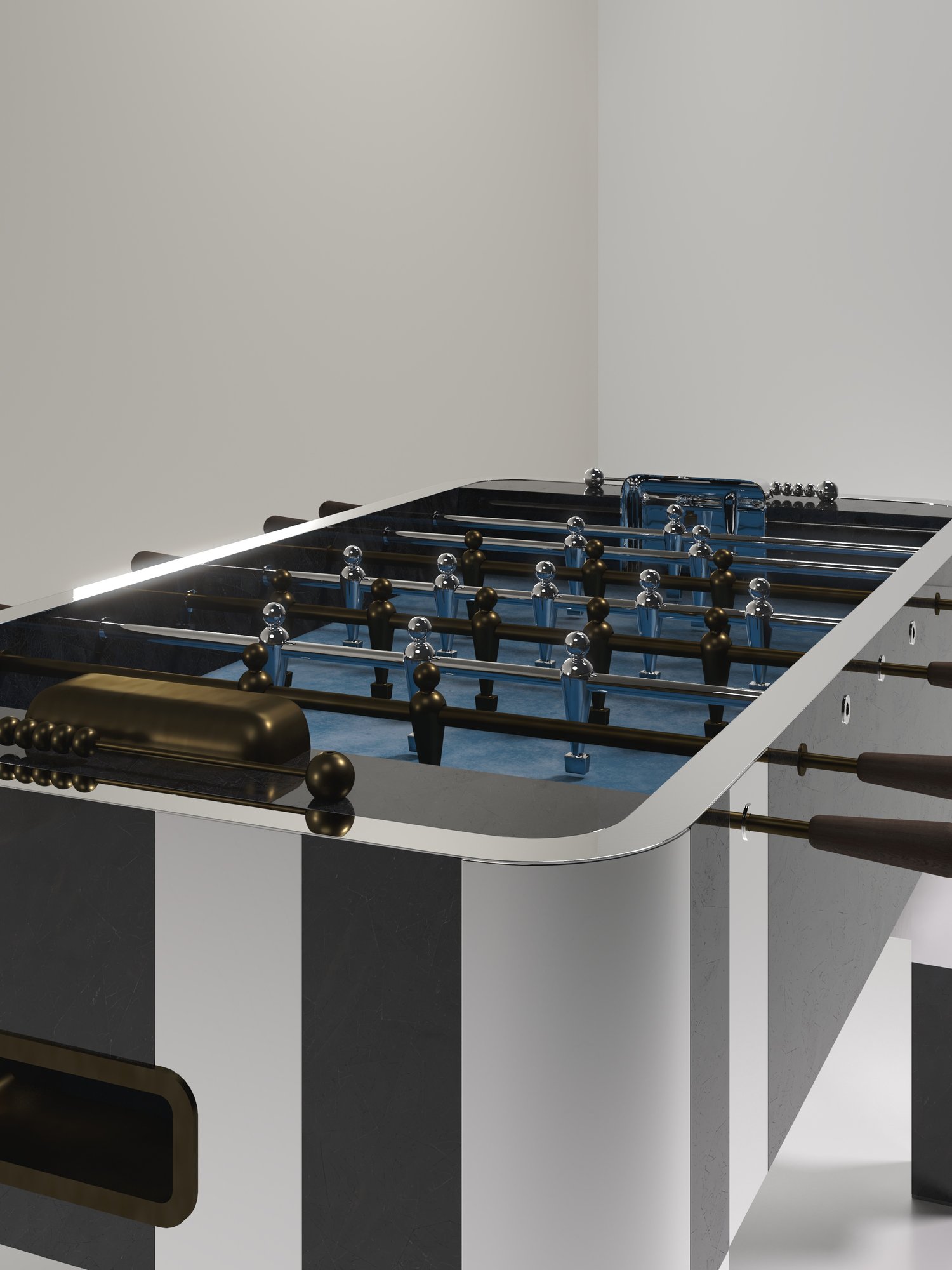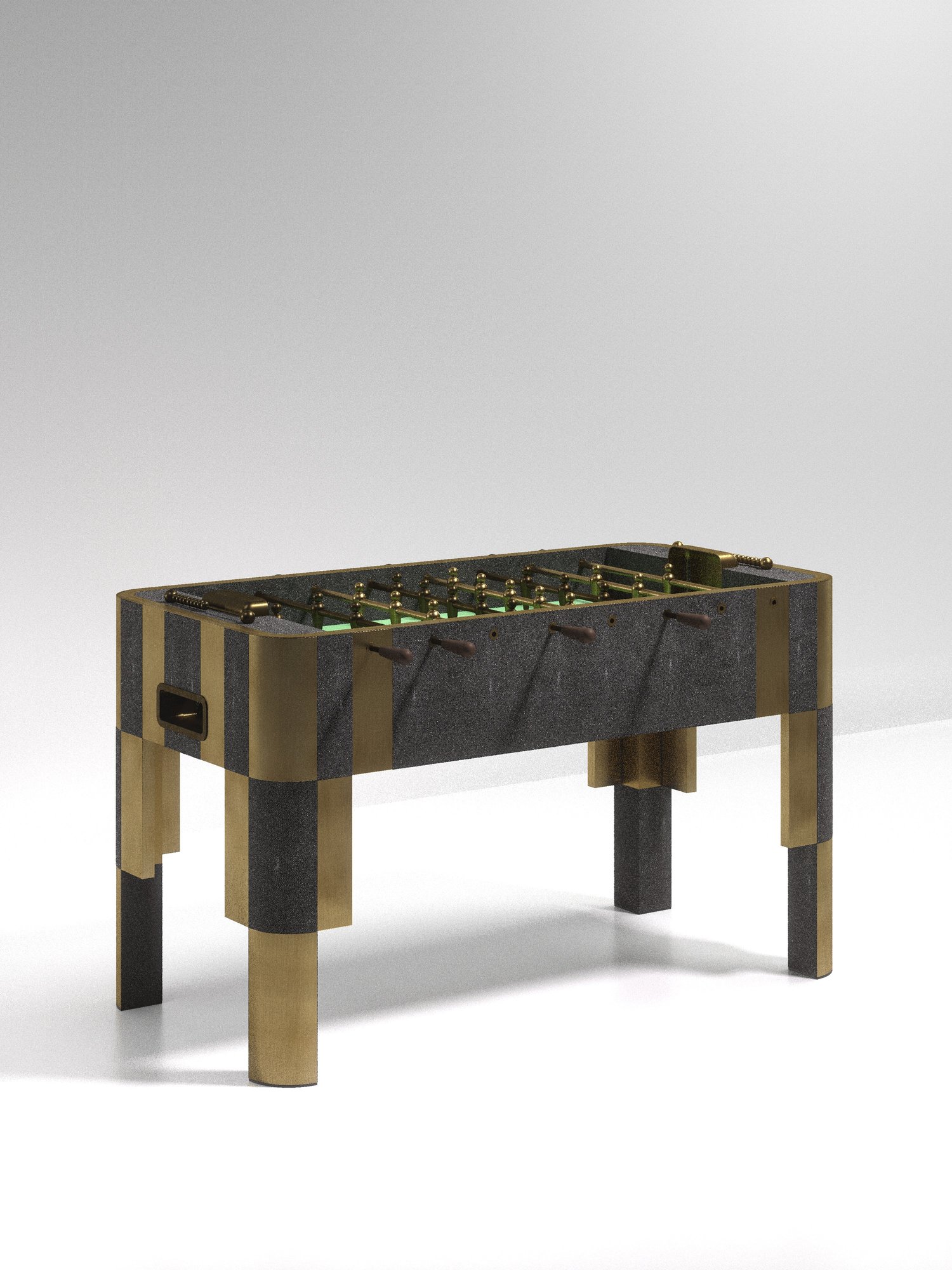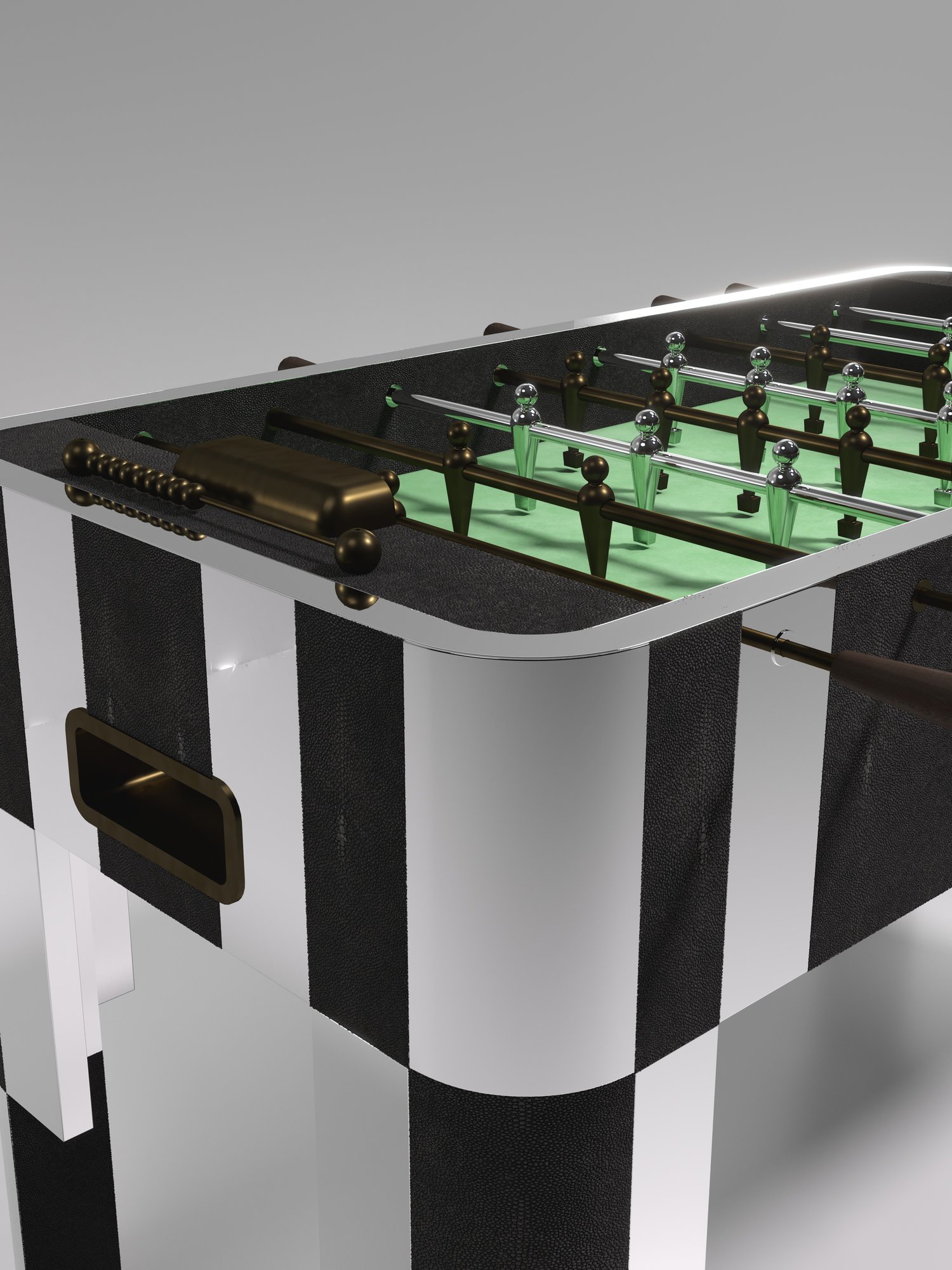 The Damier Foosball Table by R&Y Augousti is a truly luxurious statement piece for your home. The retro-feel of the piece with the checkerboard inspired pattern mix of cream shagreen and bronze-patina brass creates the ultimate luxury game table. The foosball pieces are all in brass and inner table in a green velvet felt. Available in other finishes and variations