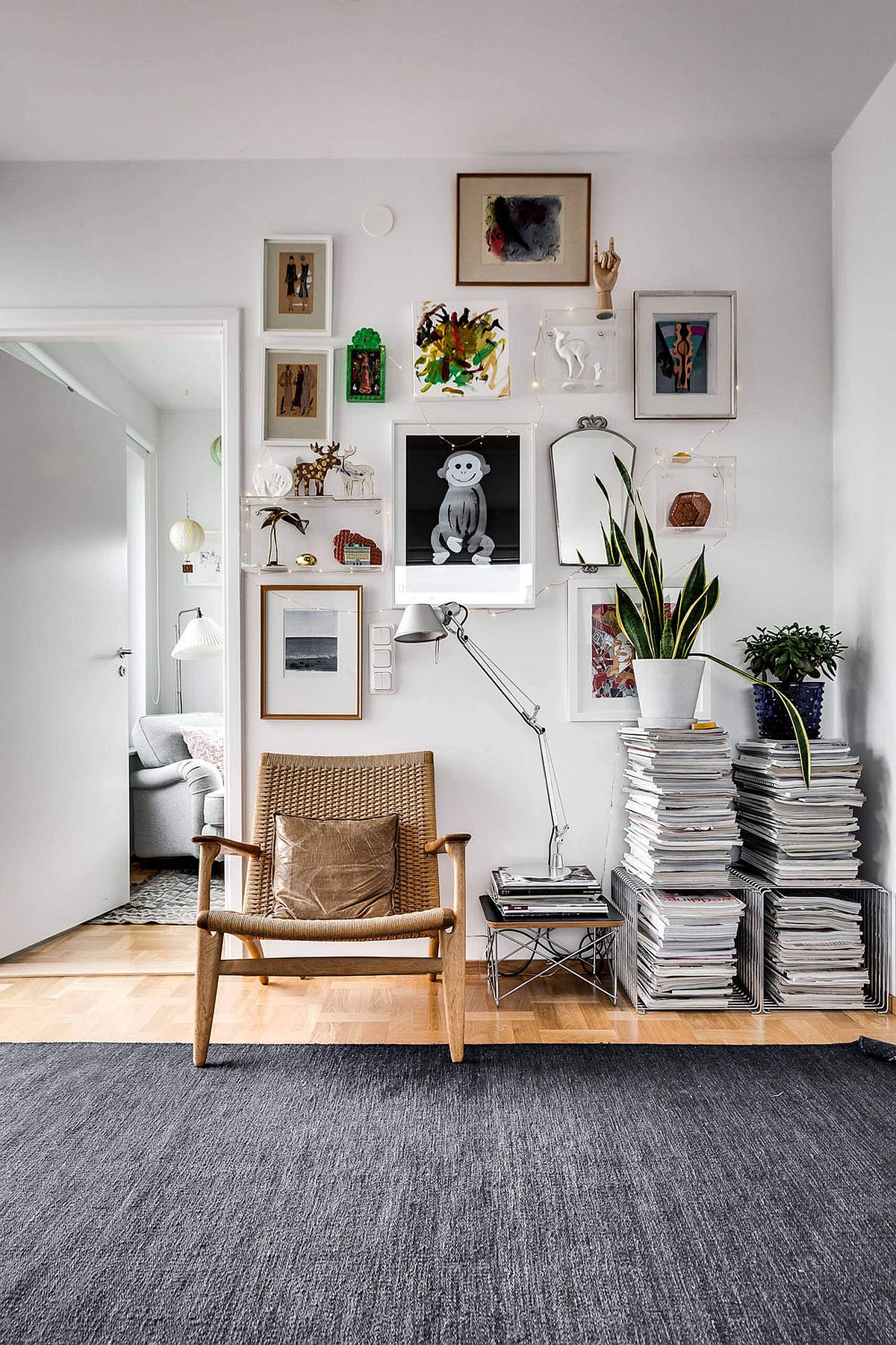 在亞歷山大·懷特的這所小公寓中,滿滿的自然光線營造出非常愉悅、舒適的氛圍,淺灰以及純白的涂料,運(yùn)用到極致的斯堪的納維亞風(fēng)格裝飾品、室內(nèi)綠植、胡桃木象棋凳子等等,將居室裝飾得簡約高雅,讓你第一眼就沉浸其中而無法自拔。