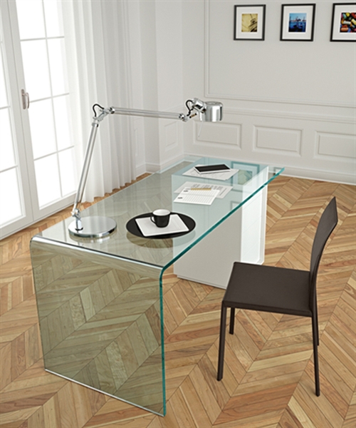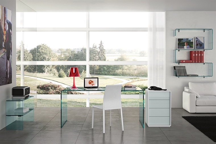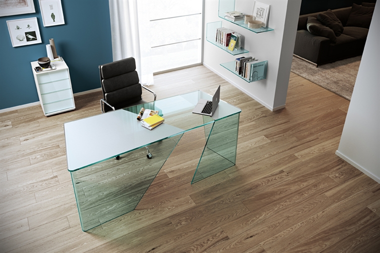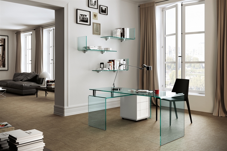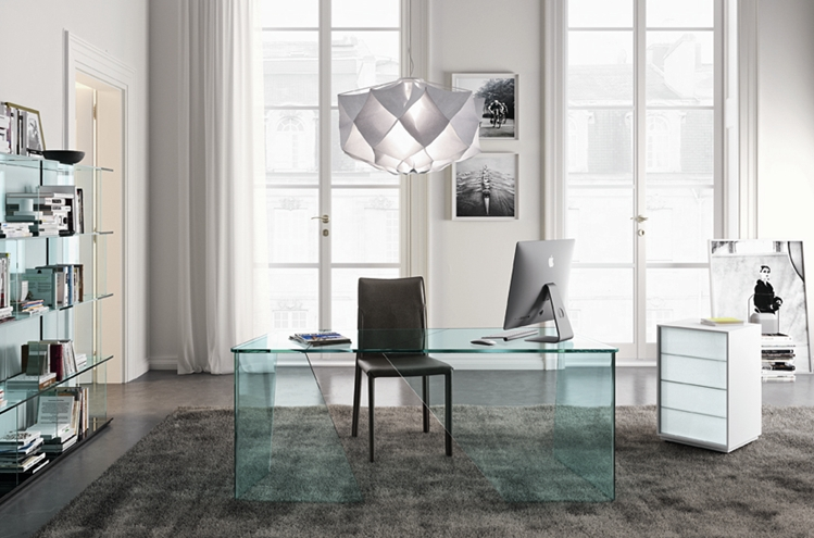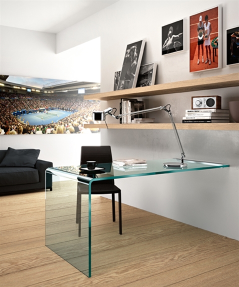 玻璃書桌,透明的桌面和桌角,空間更多了一抹輕盈靈動,