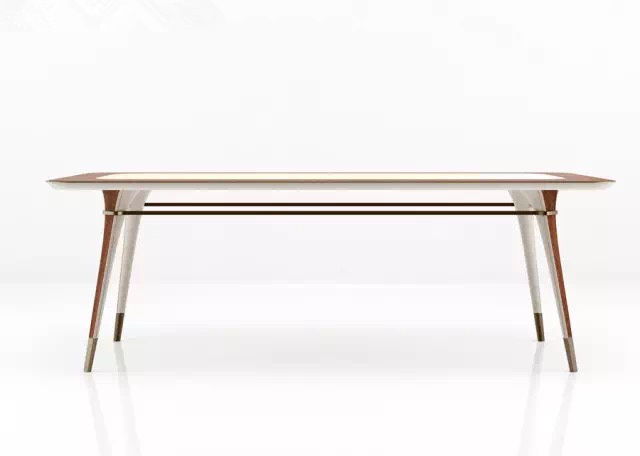 MADISON玄邊桌,圓潤(rùn)的角度,溫和的色澤,搭配金色的裝飾。