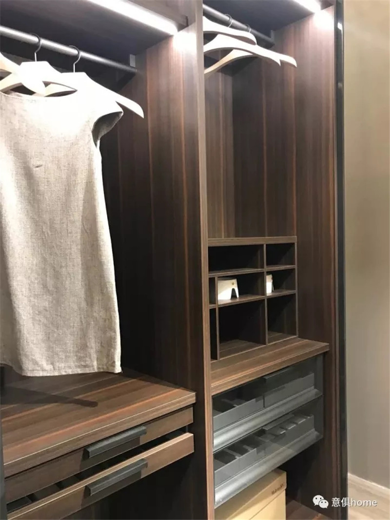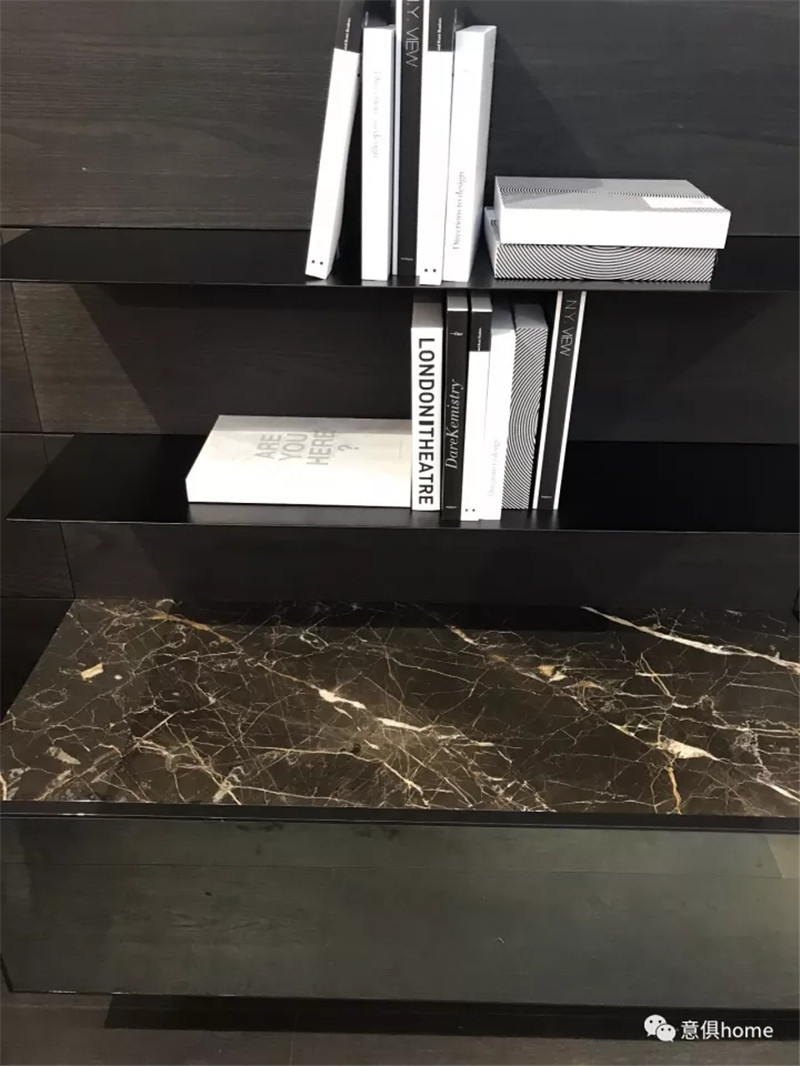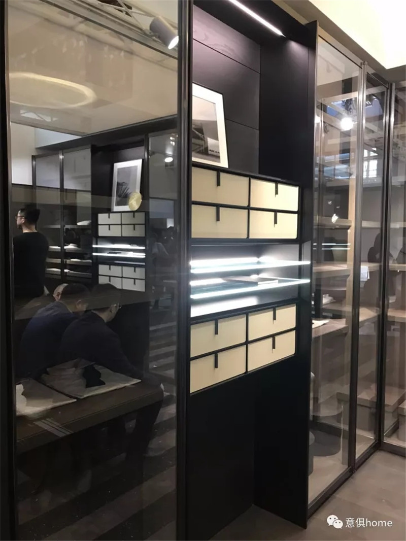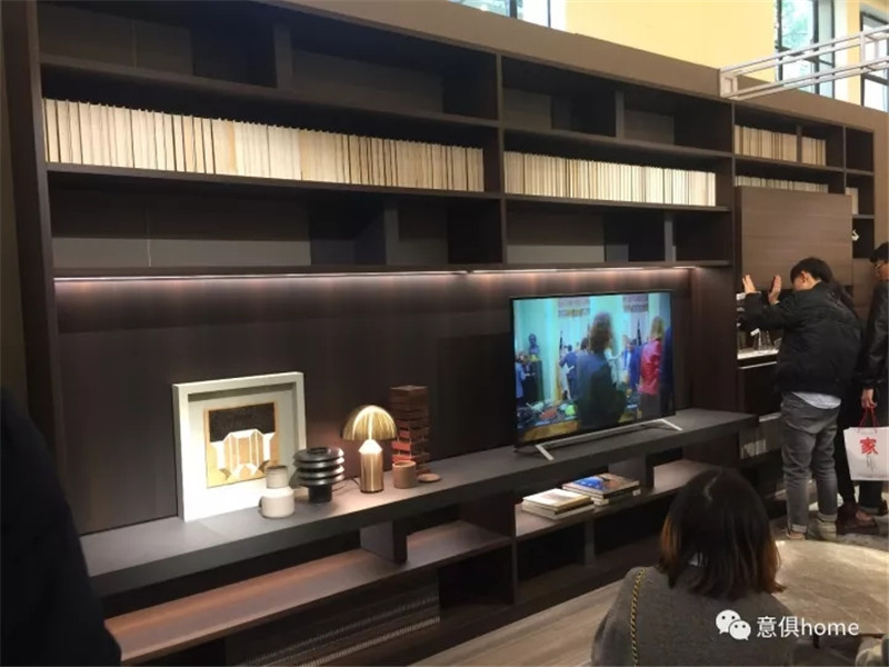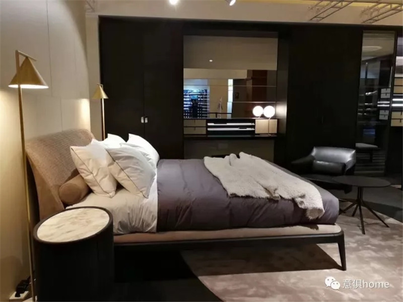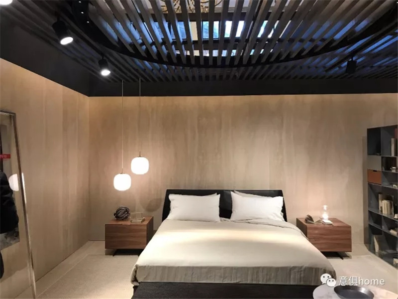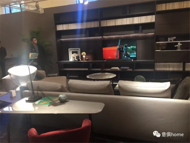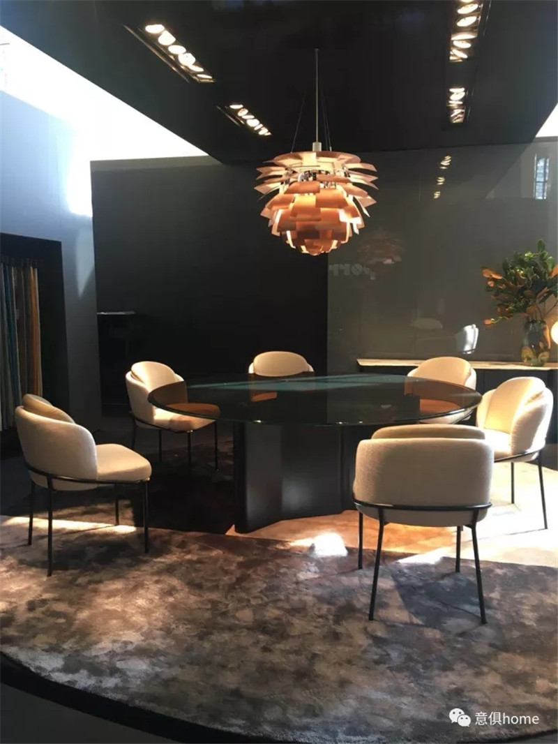MOLTENI&C將展區分為餐廳區、客廳區、開放式廚房、臥室及衣帽間,此次的產品,皆考慮到了人們的生活方式和細節,暖黃的燈光下,MOLTENI&C展區倍感溫馨!