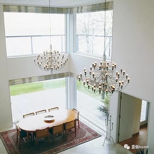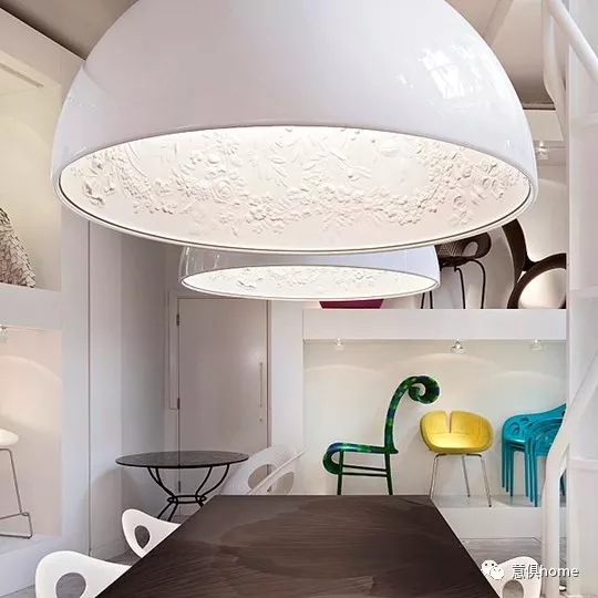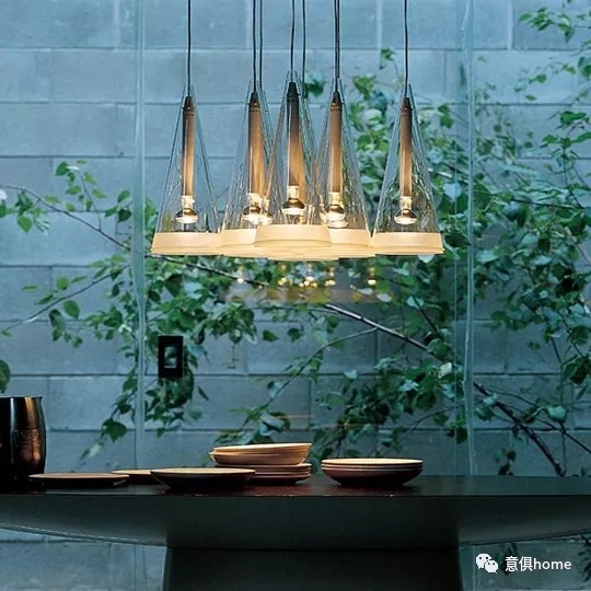 FUCISIA玻璃吊燈,是由Achille Castiglioni設計的,它可以當做單個吊燈使用,也可以多個,構成一個完美的空間設計。