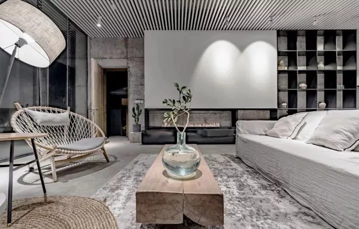 雙圓環的設計在中國傳統文化里代表吉祥如意,幾個突出的石頭方體,拓展了建筑室內的功能屬性,不同地域文化的交融和碰撞。