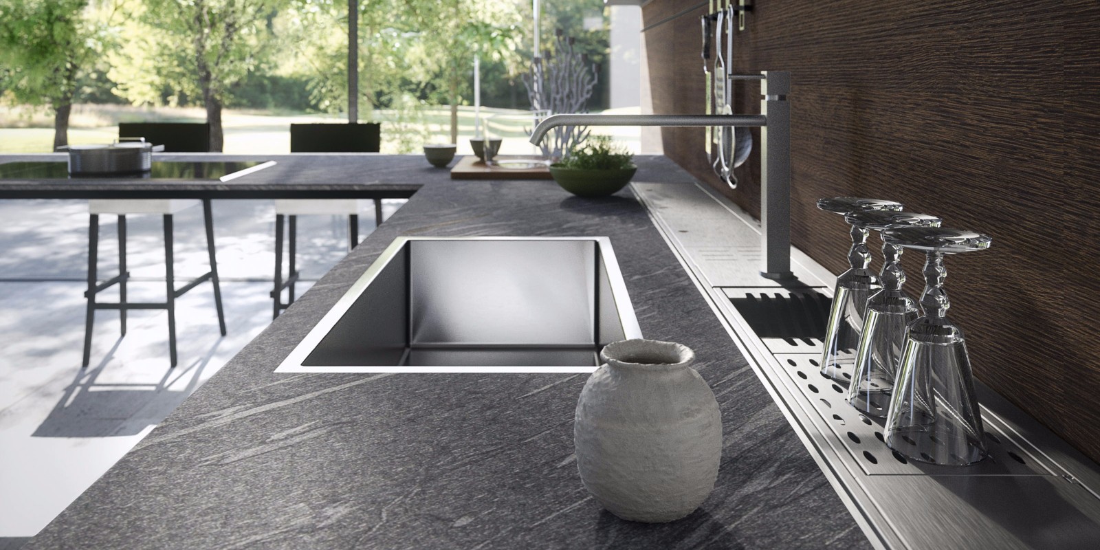 幾十年來,VALCUCINE產(chǎn)品的獨特選料使其在業(yè)內(nèi)一路保持領(lǐng)先地位;但VALCUCINE并未止步,而且不斷革新技術(shù),精益求精:如新品所選用的強(qiáng)化玻璃門板厚度僅為2MM,而玻璃臺面更可耐熱高達(dá)180度,即使直接接觸高溫也不會裂損。