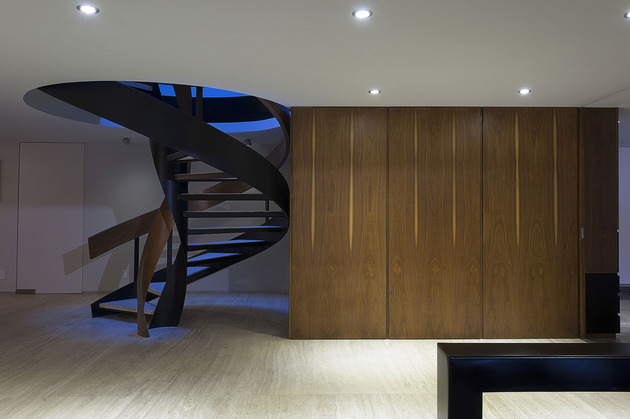 因為墻壁的特殊結構,這個兩層樓的建筑還增添了許多凹間,給主人提供了私密空間。