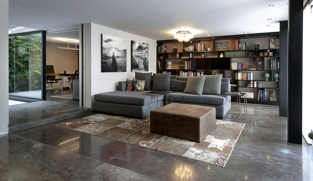 小意推薦:混凝土結構承受住了整棟樓的重量,使大量玻璃得以取代原始墻壁,將別墅設計成一種真空狀態,貼近大自然的同時也不忘享受生活,意大利奢侈家具襯托品味。