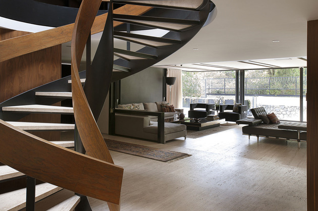 小意推薦:雖然別墅用大量混凝土建成,但房屋的內部用大量原木裝修,內外形成了鮮明的冷暖對比。