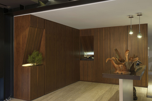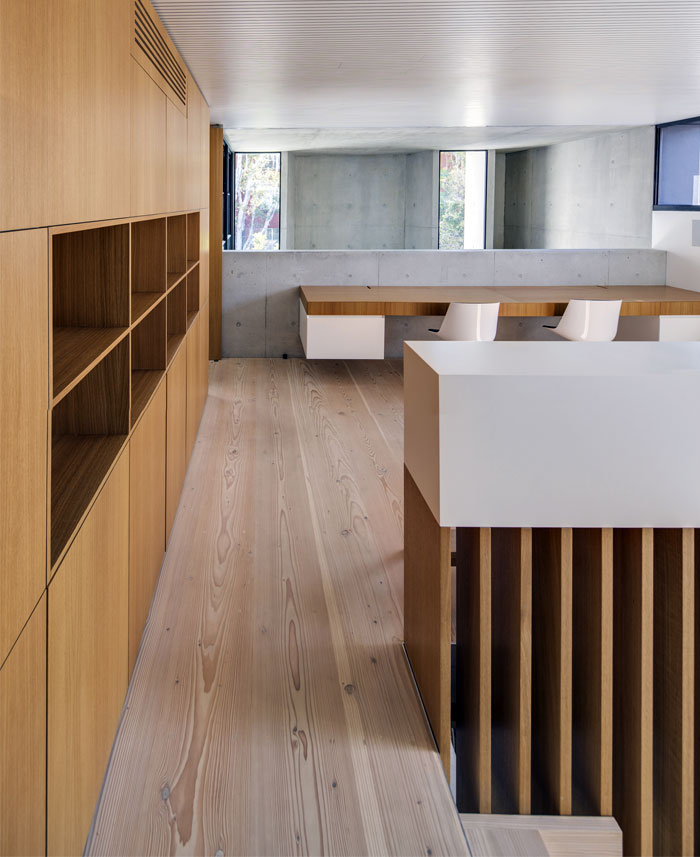 裸露的混凝土表面一直延伸到內部,與內部空間溫暖的木質元素——橡木家具和細木工制品,還有松木地板形成了對比。這種對比在建筑外觀得到再次強調,展現空間自身的自然屬性。