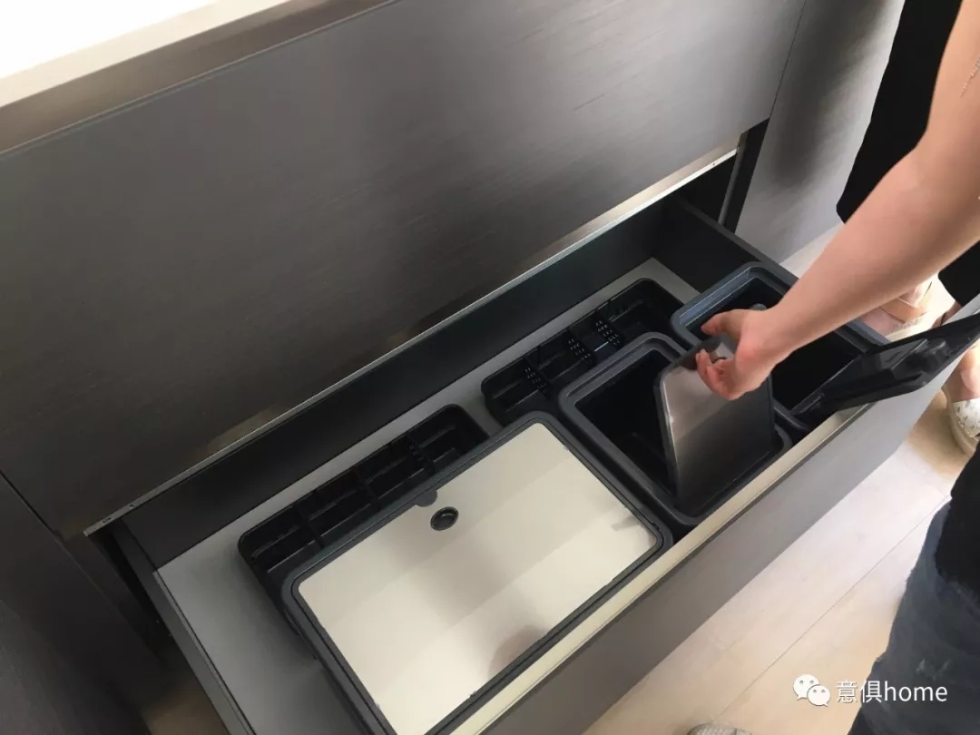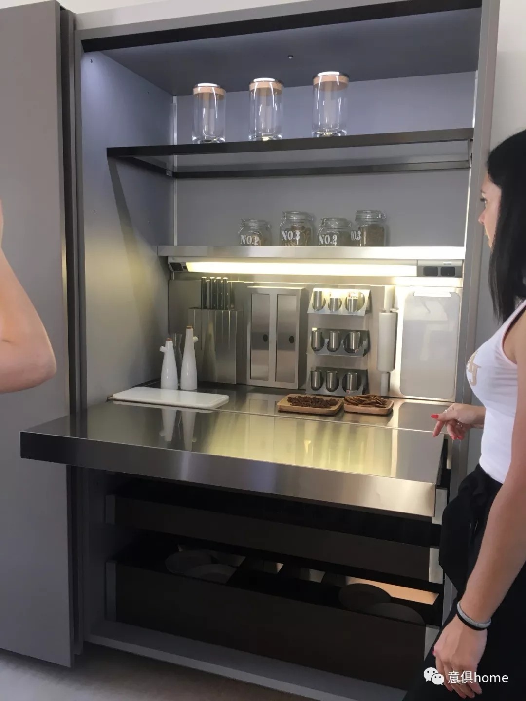 櫥柜的門體在打開之后,能伸進(jìn)暗格,極大的節(jié)省了空間,這對于技術(shù)和五金的要求也十分的高。
