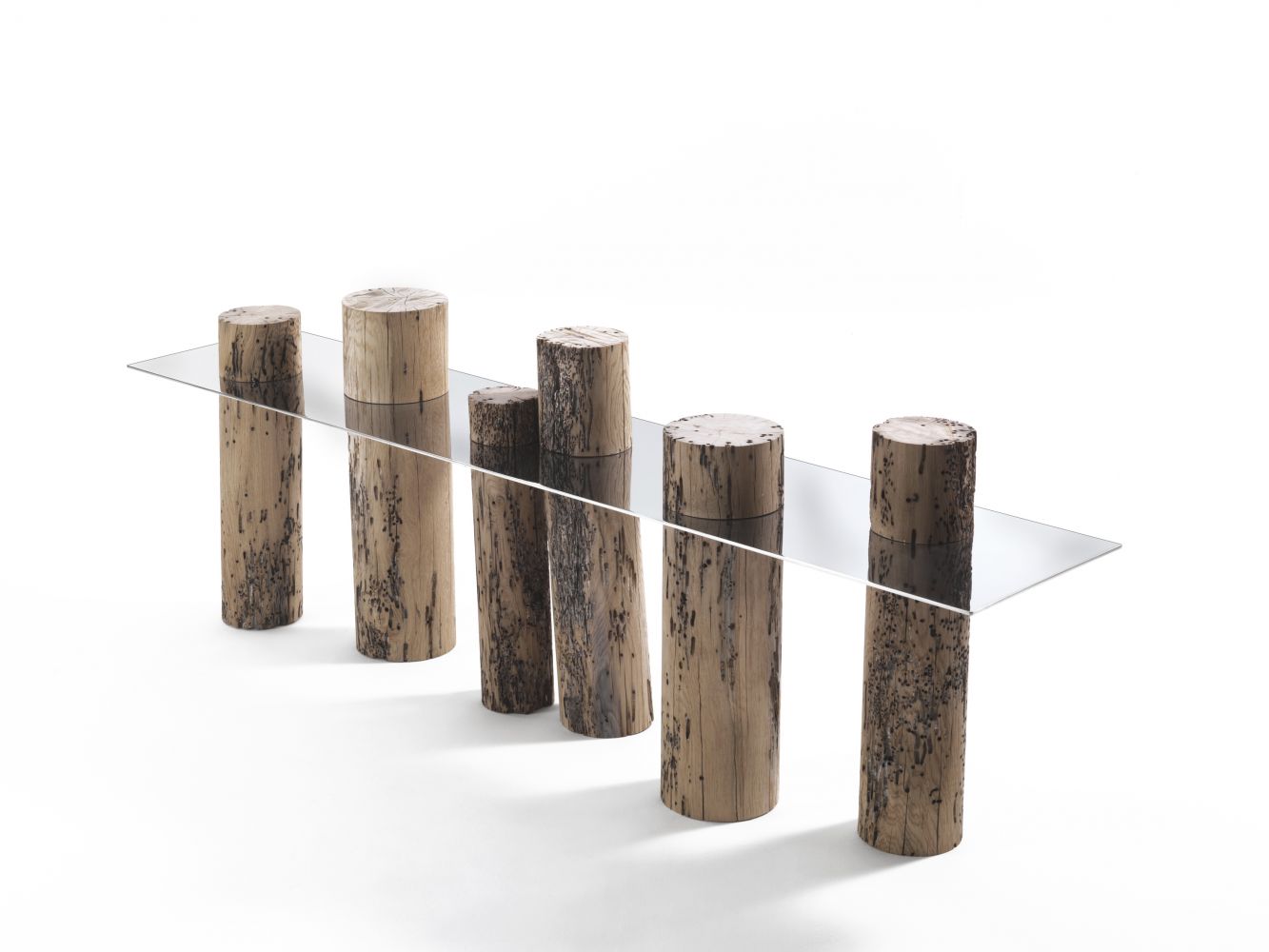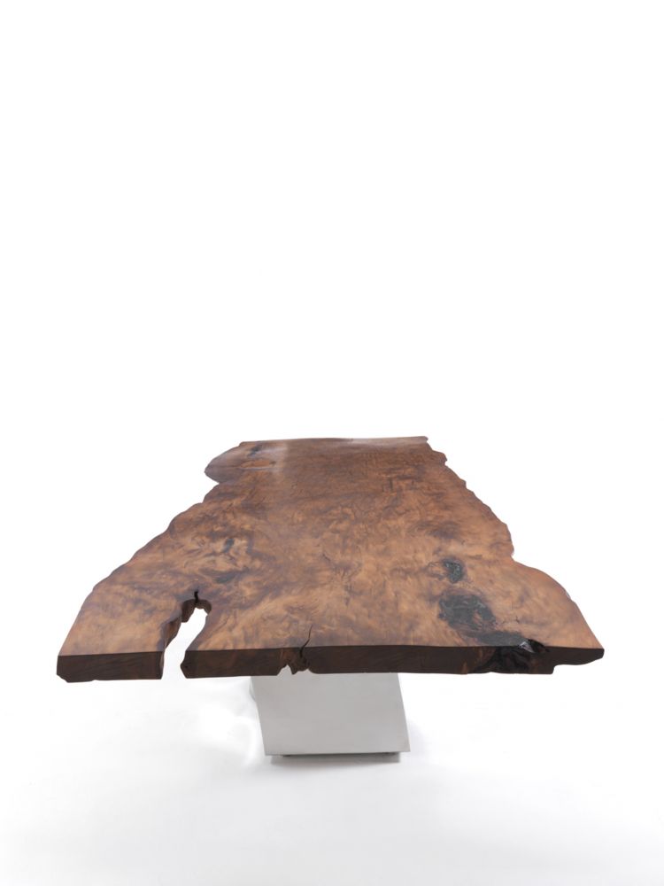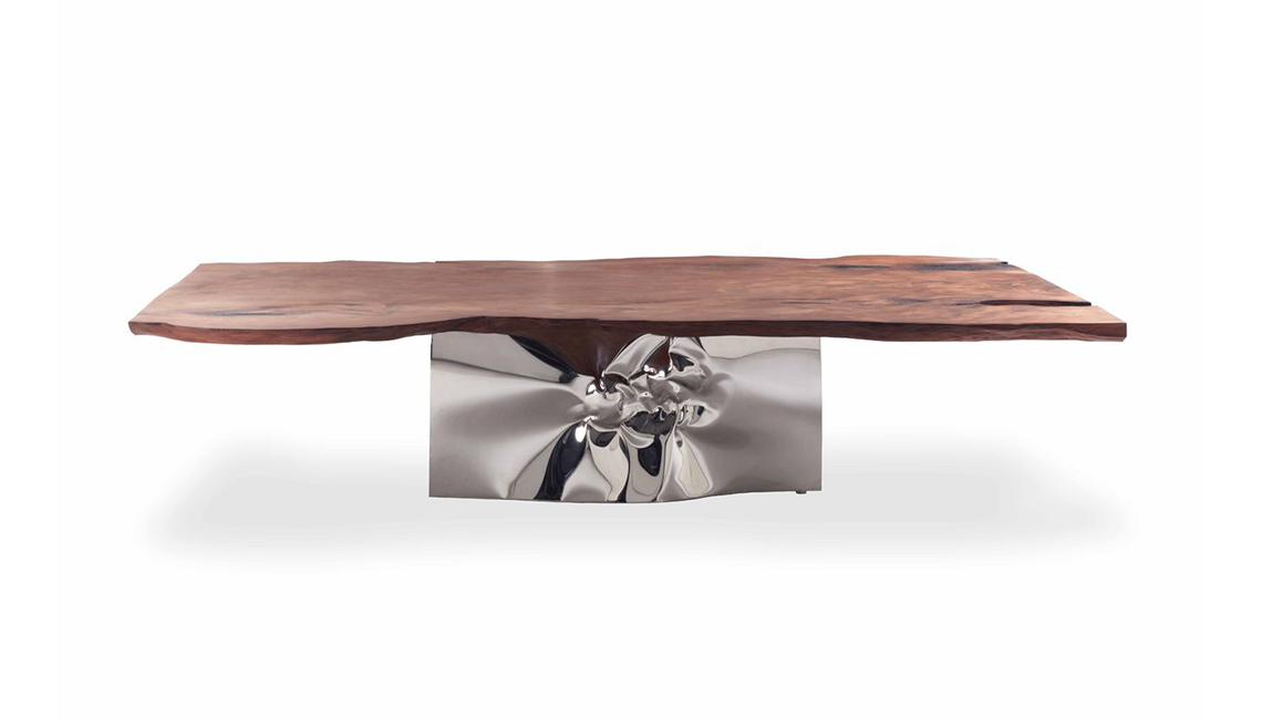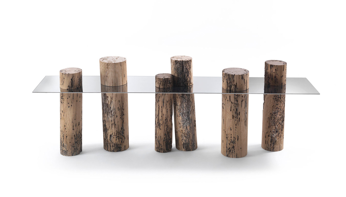 這是Riva1920用威尼斯橡木制作的具有標(biāo)志性的餐桌,它模仿木材一半淹沒于水中一半呈現(xiàn)在水面的景象,利用原始木料,設(shè)計(jì)了這一款與眾不同的餐桌。