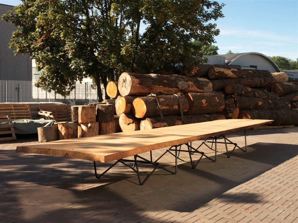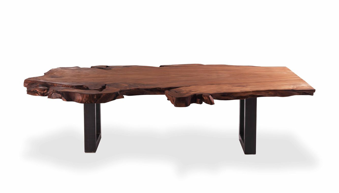 餐桌桌面由新西蘭古老的木材——貝殼杉木制成,國際著名的藝術(shù)家赫利登·希沙克在設(shè)計(jì)這款餐桌時(shí),將鍛造的鋼片作為餐桌的底柱,這是自然產(chǎn)物與人工材料的結(jié)合。