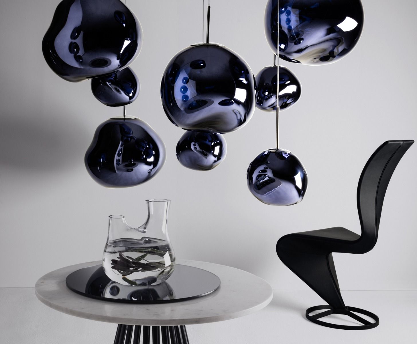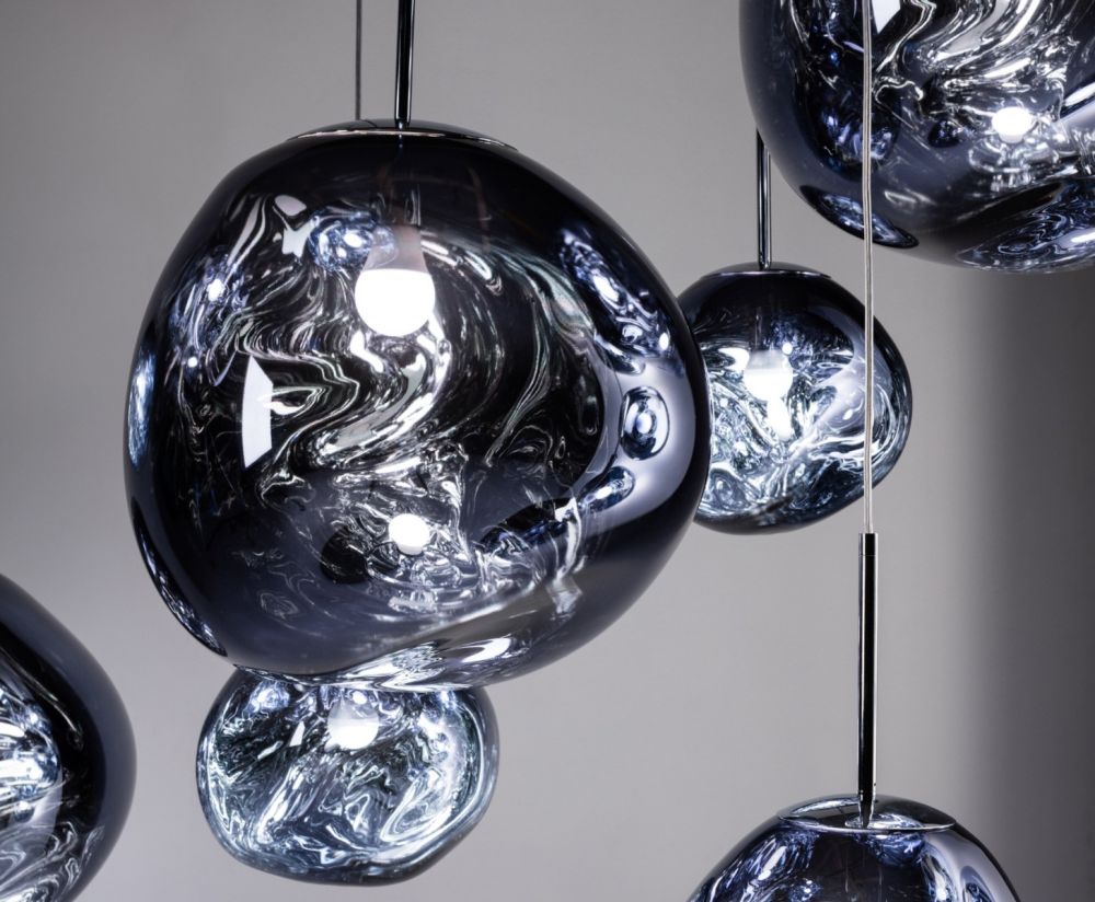 MELT吊燈的靈感來自于熔融的玻璃,通過吹塑和真空金屬化的過程創造出來,以實現熔化的球體,具有豐富而不同尋常的亮度。