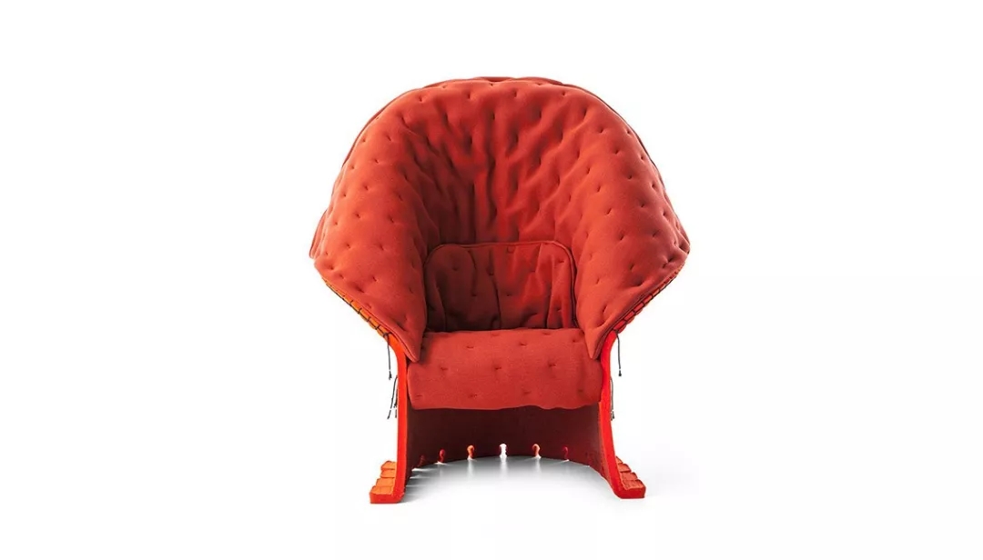 Antibodi是出自Cassina現(xiàn)任設(shè)計總監(jiān)Patricia Urquiola之手,突破了椅子常規(guī)形狀,縫制的三維幾何狀的花瓣似盛開,似閉合,用三角形基底的圖形結(jié)構(gòu)布局,就像一場花卉大爆炸一樣奇妙的象征。