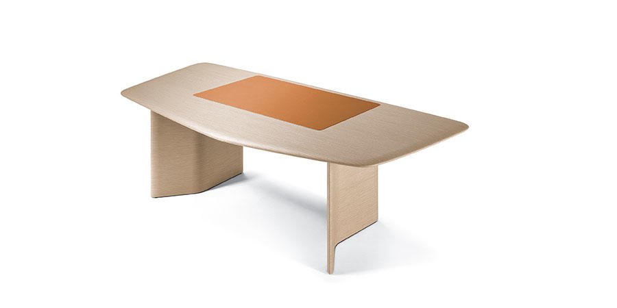 Poltrona Frau 的TRUST書桌,流線型的設(shè)計讓桌面看起來更加光滑有質(zhì)感,純木質(zhì)材料搭配上等皮革,顏色的遞進使得書桌看起來高級感十足,凳腳的折疊設(shè)計,是整個書桌的亮點。