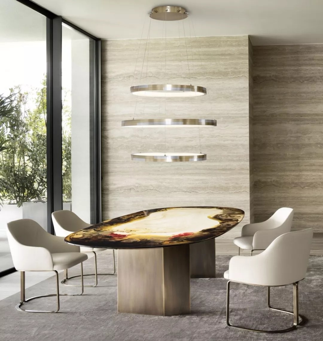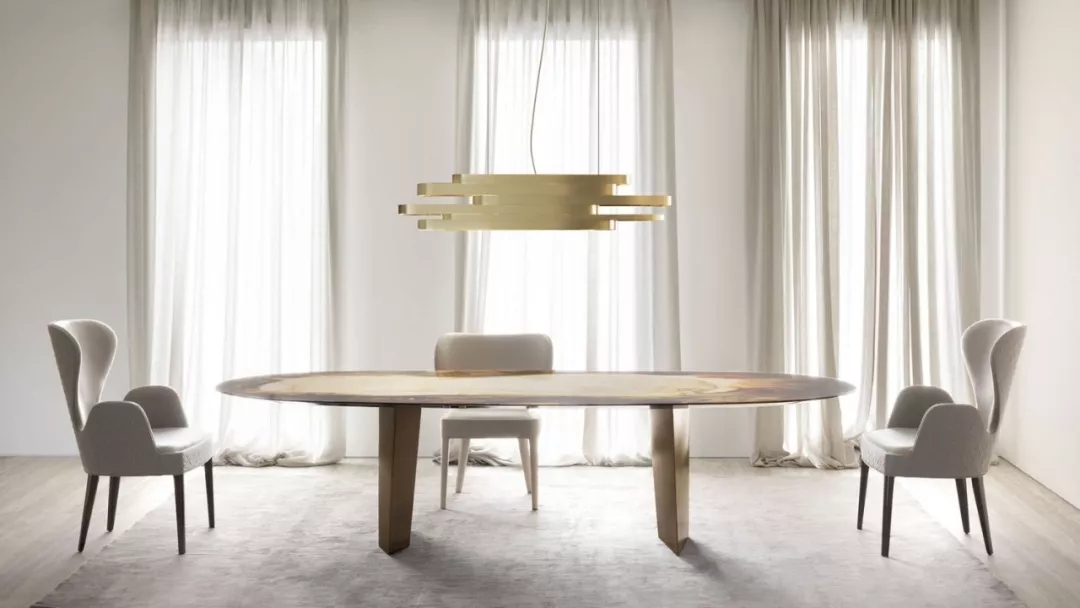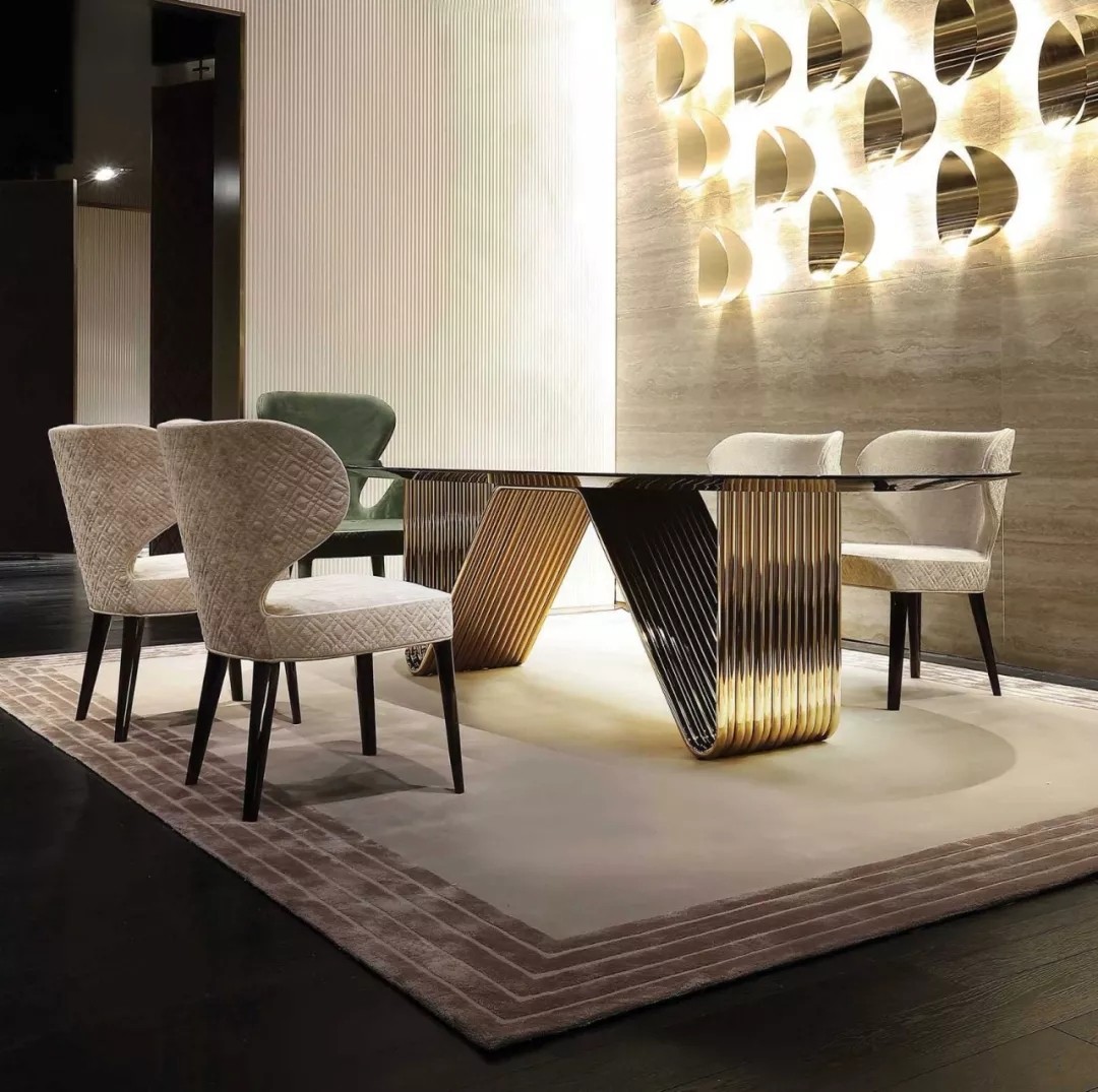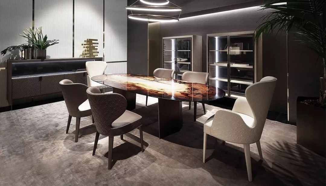 RUGIANO對于餐桌的設計,著重設計餐桌腳,每一個餐桌的地步都有不同的形狀,充滿創意的同時,高貴與優雅并存。