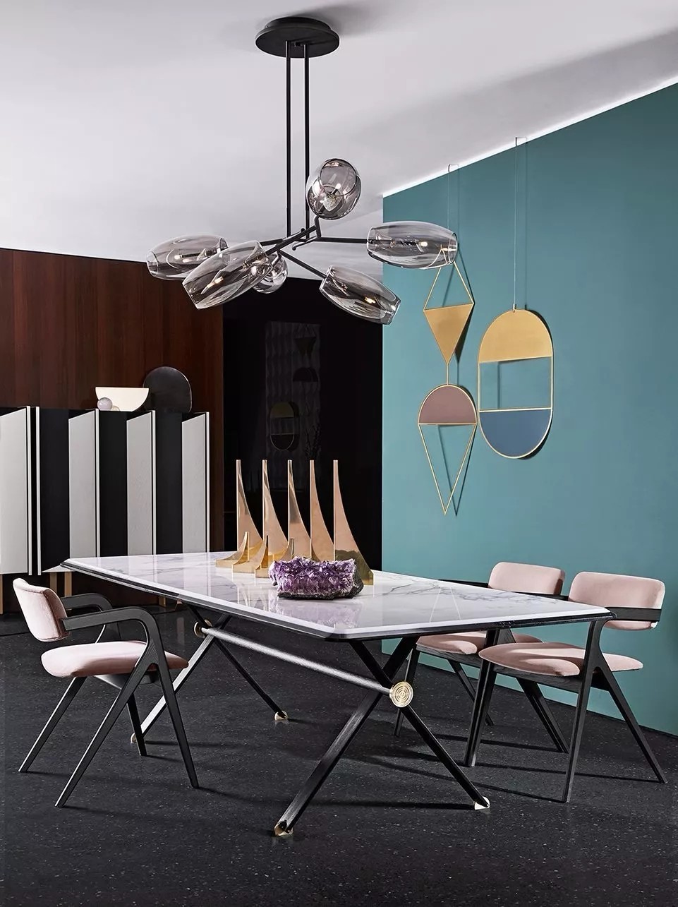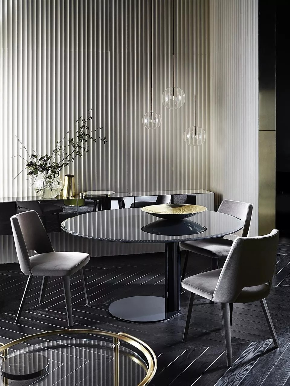 除此之外,Gallotti&Radice在不銹鋼、黃銅、鋁等多種材料與玻璃結合的設計運用中,以優雅的玻璃主體呈現家具輕盈通透的懸浮視覺,輔以金屬材質凸顯作品的精致與奢華感,同樣表現的游刃有余。