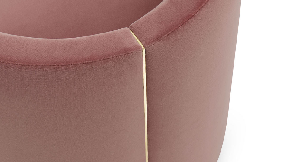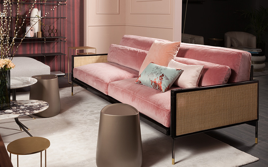 Vibieffe的115 MODERN EPOQUE沙發以蜜桃色為主色,讓空間更加有溫度。在這樣的沙發上放松自己,工作的疲憊會立刻散去,這是蜜桃色傳遞的舒適感。