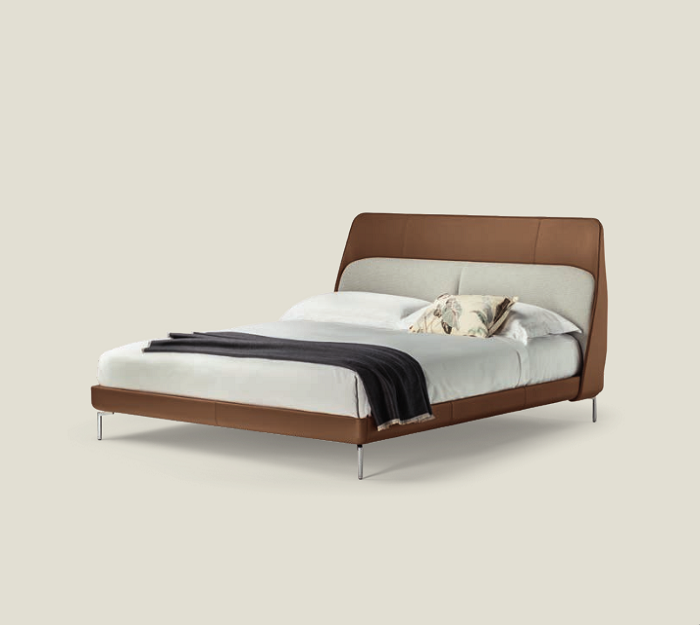 這款床在設計中特別注重床頭板和床架之間的關系:兩種獨特的幾何形狀,在保持個性的同時,通過微妙的處理,使平衡與力度和諧交融,突顯整體流暢且緊湊的線條。