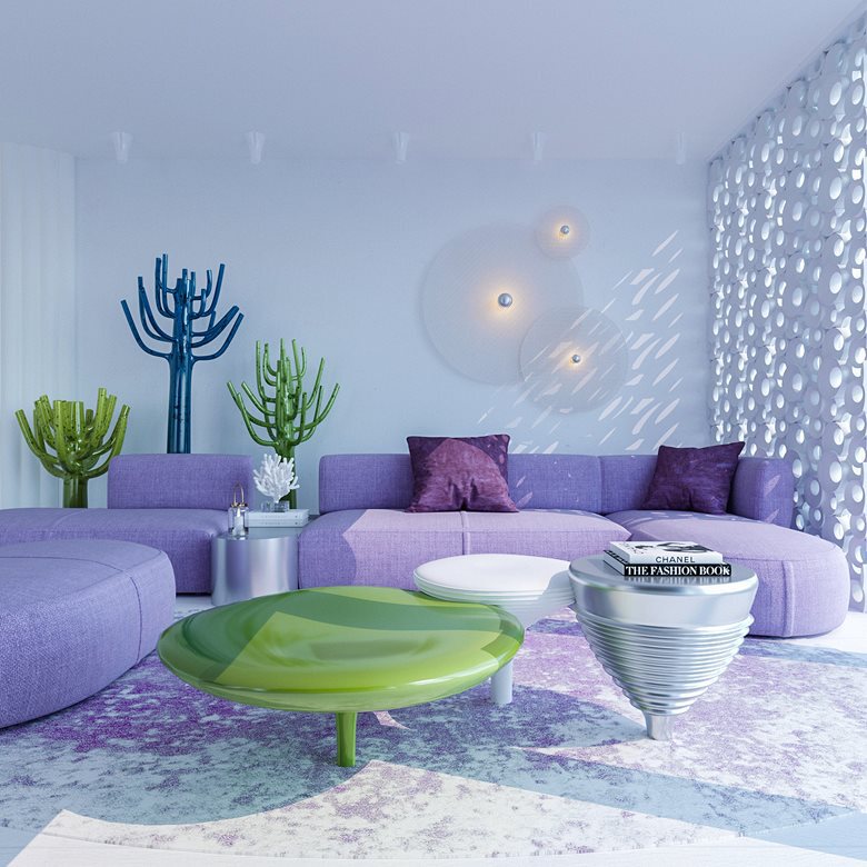 通過顏色飽和度來進行視覺層次渲染的紫色空間,總是充滿了誘惑力。