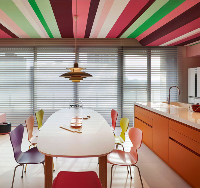 在色彩的世界里,總是充滿了無限的可能性。空間的色彩運用最難得不是選色,而是找到平衡點來打造沒有違和感的理想空間。相對于黑白灰的保守色系來說,用作為跳色功能的亮色來做空間基色是很大膽選擇,但這種大膽伴隨的是意想不到的驚喜。