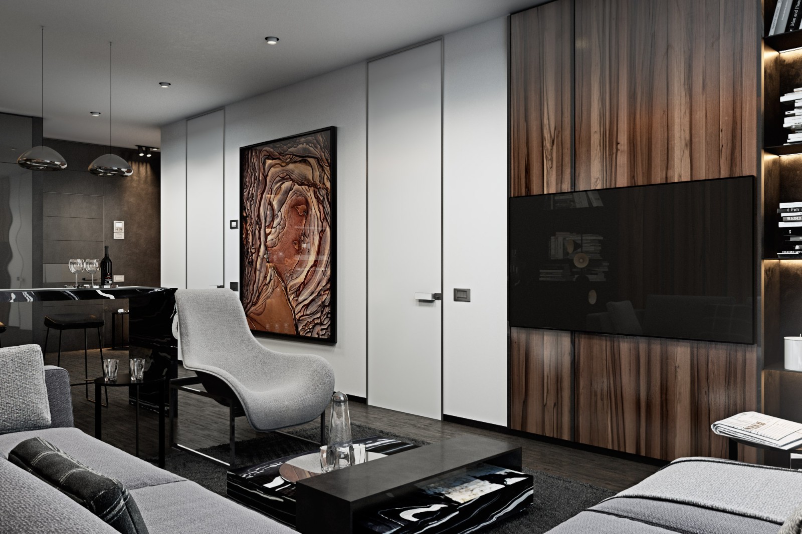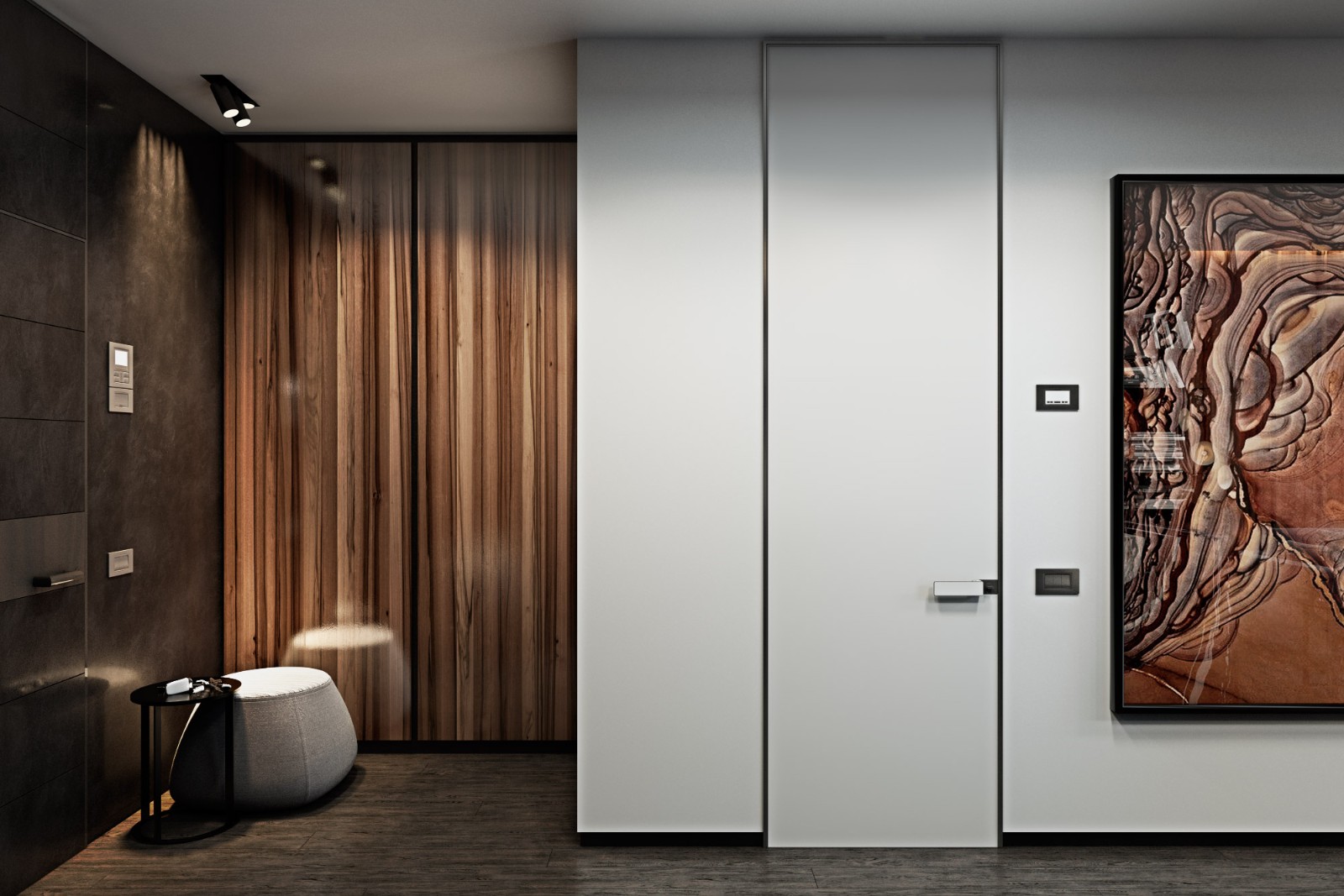使用中性色作為裝飾畫來搭配空間色彩,無疑可以突出家居空間的主色。黑白灰的色調給人一種大方沉穩的視覺感,同時也是不會出錯的經典色。