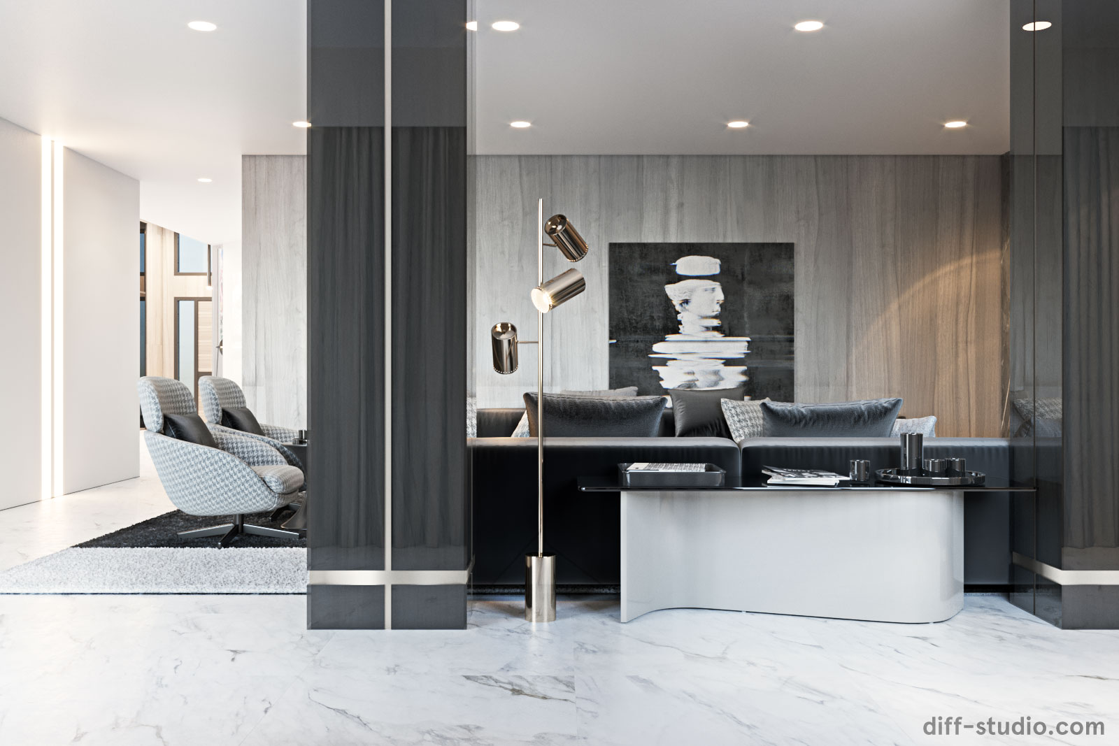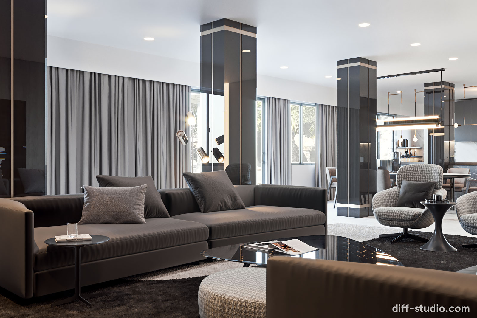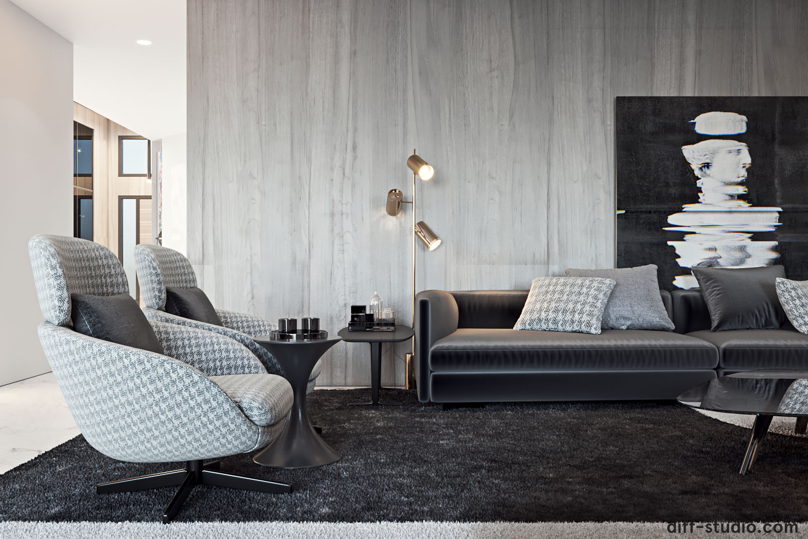 客廳作為家的“臉面”,是承載人際活動最多的場所。由Diff.studio工作室操刀的本案例,將黑白灰搭配到了極致。整個客廳像素描一般,用簡單的一只鉛筆勾勒出栩栩如生的輪廓與質感。呈現出內斂、紳士、大氣的屋主氣質。