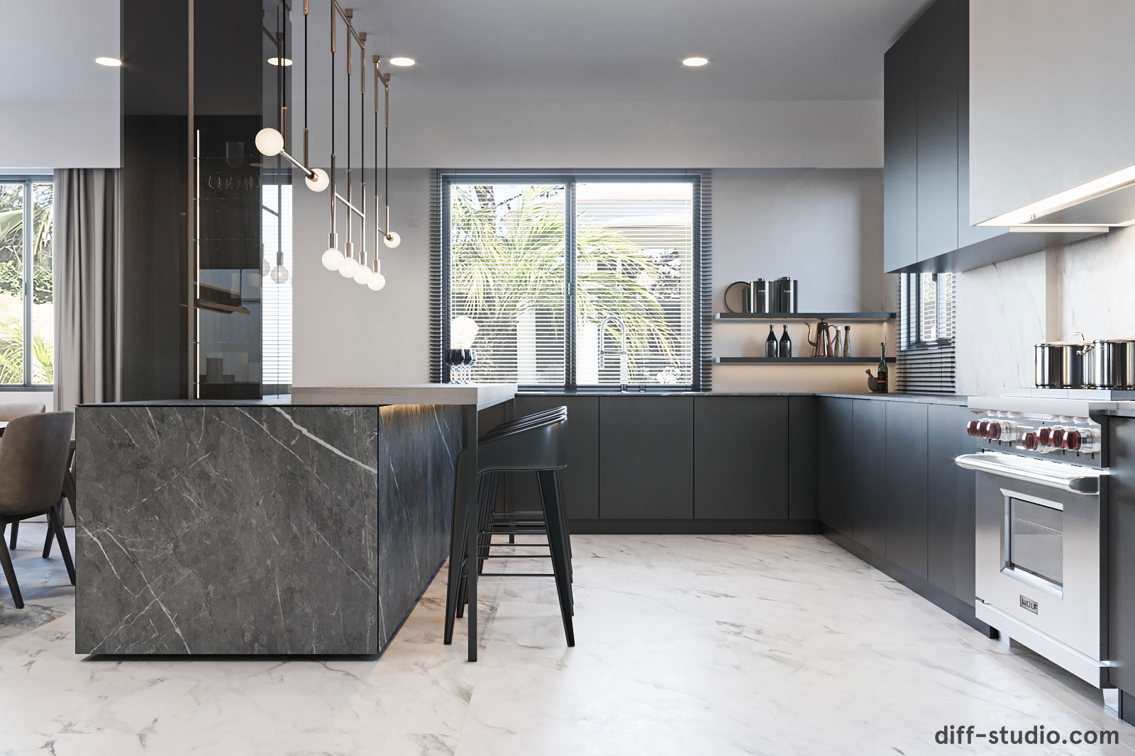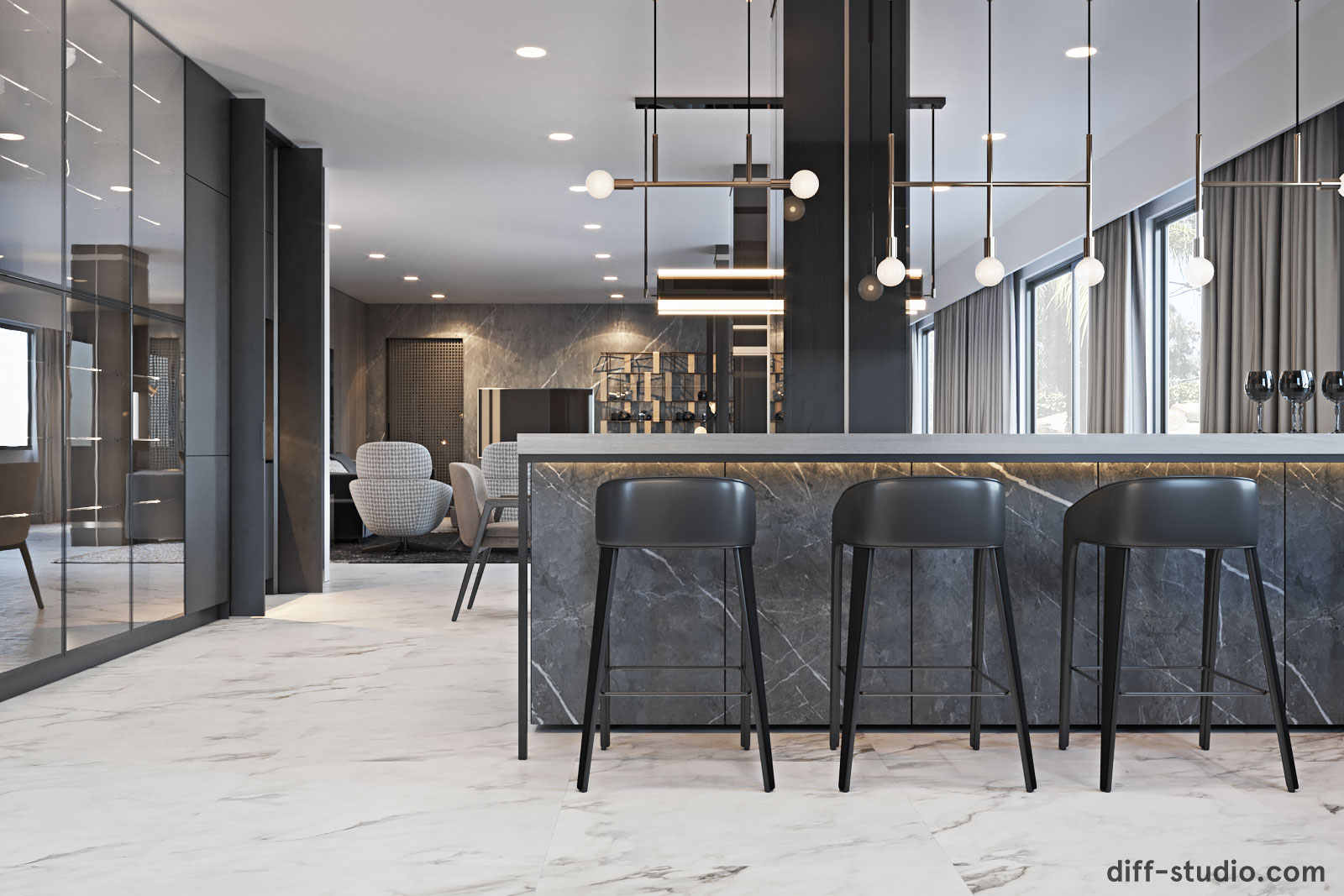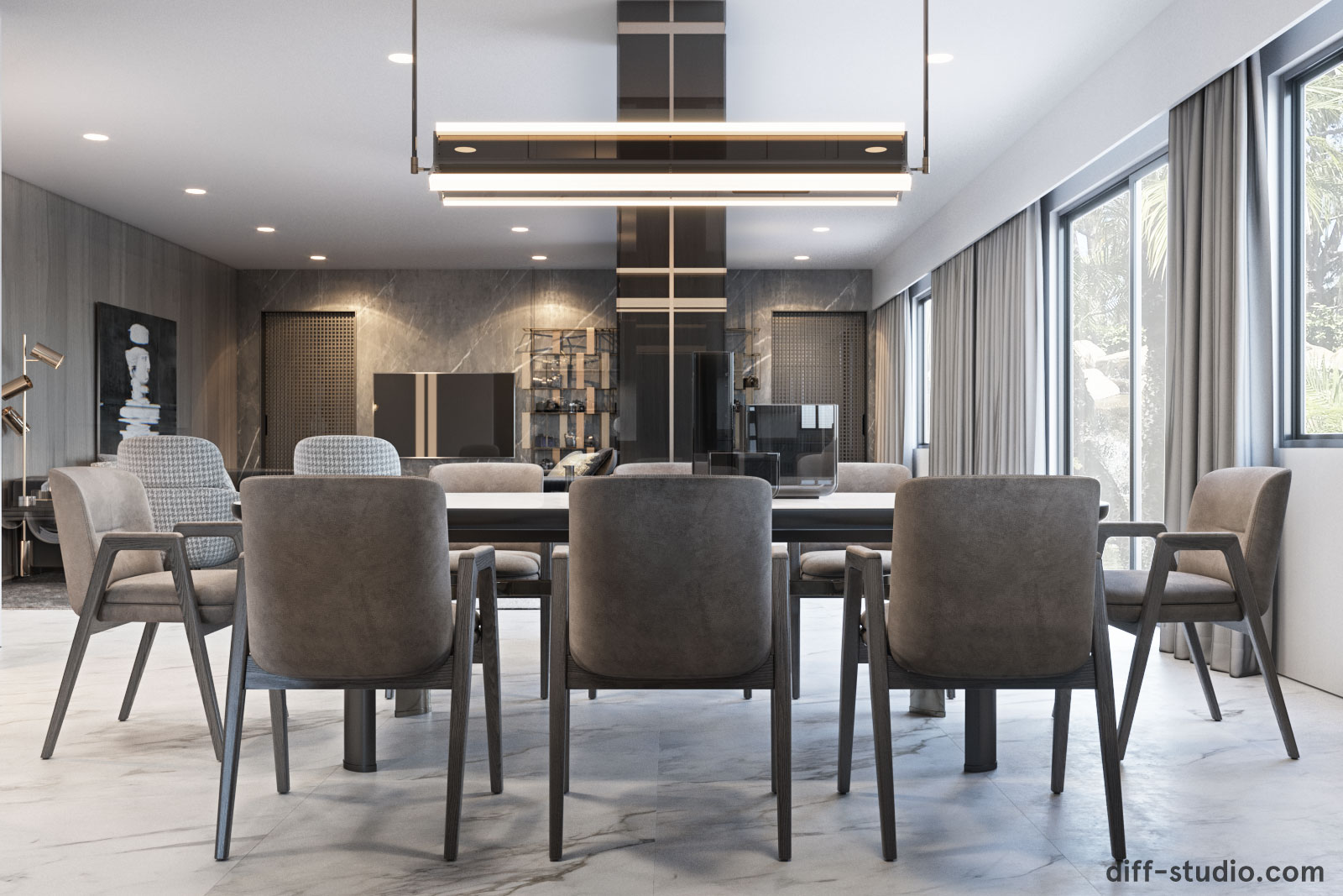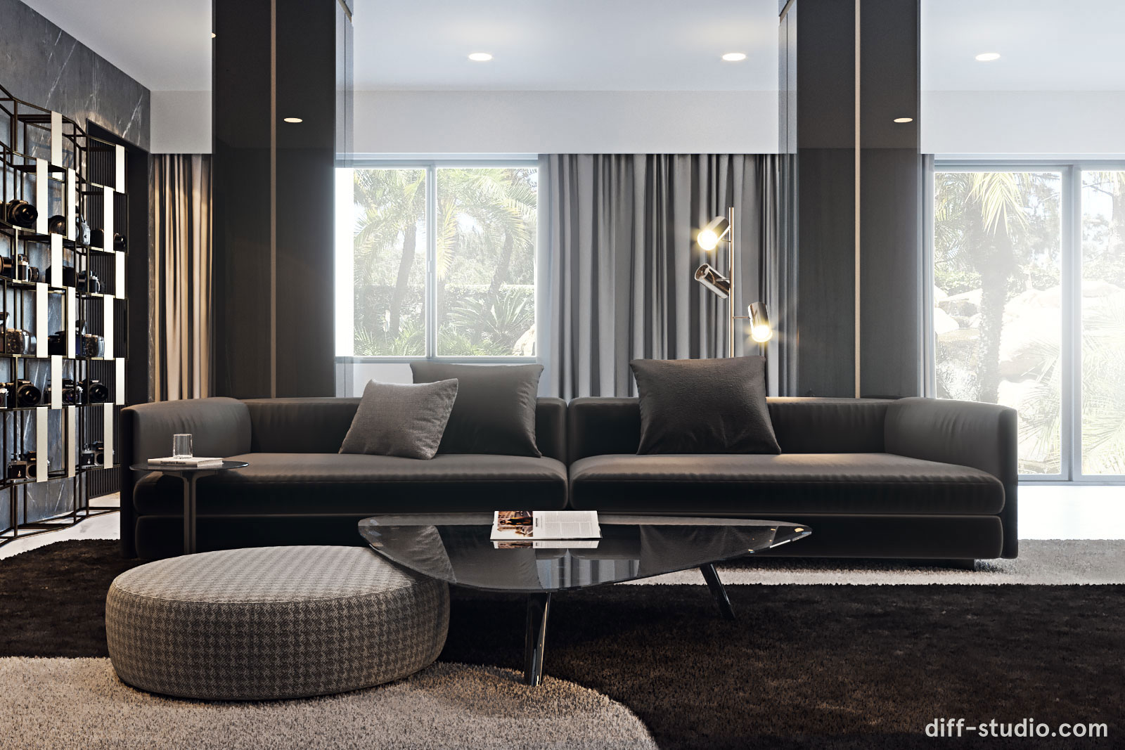 客廳作為家的“臉面”,是承載人際活動最多的場所。由Diff.studio工作室操刀的本案例,將黑白灰搭配到了極致。整個客廳像素描一般,用簡單的一只鉛筆勾勒出栩栩如生的輪廓與質感。呈現出內斂、紳士、大氣的屋主氣質。