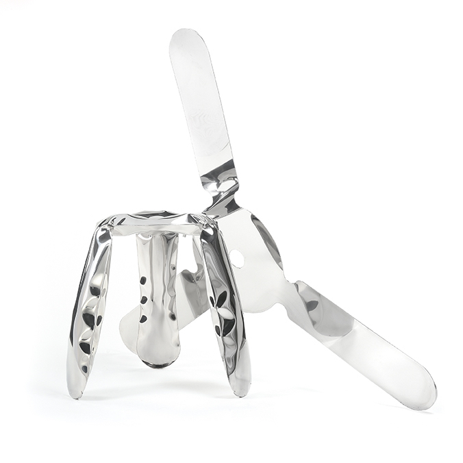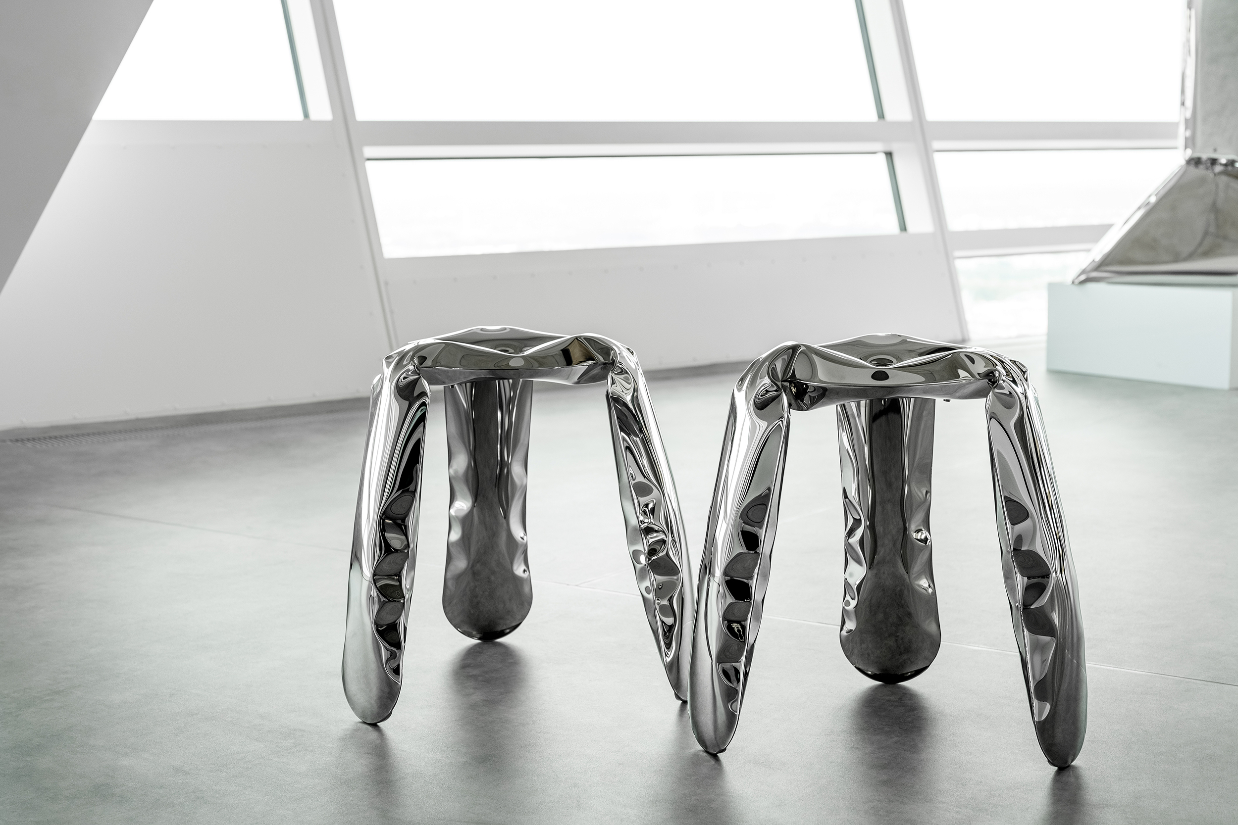 The PLOPP stool is an original, iconic object made in FiDU. It is a flagship of Zieta Studio and a symbol of Oskar Zi?ta’s research into the properties and possibilities of metal. The “Polish Air-Pumped Folk Object” proves how the artistic aspects of the design can be summarized in highly advanced engineering forms. Winner of the Red Dot Design Award 2008, the German Design Council Award 2008, and the Forum AID Award 2009. PLOPP is a manifesto of the FiDU technology and the “controlled loss of control” process. Two ultra-thin steel sheets are welded together around their edges and inflated under high pressure, deforming a 2.5D flat form into a 3D object.